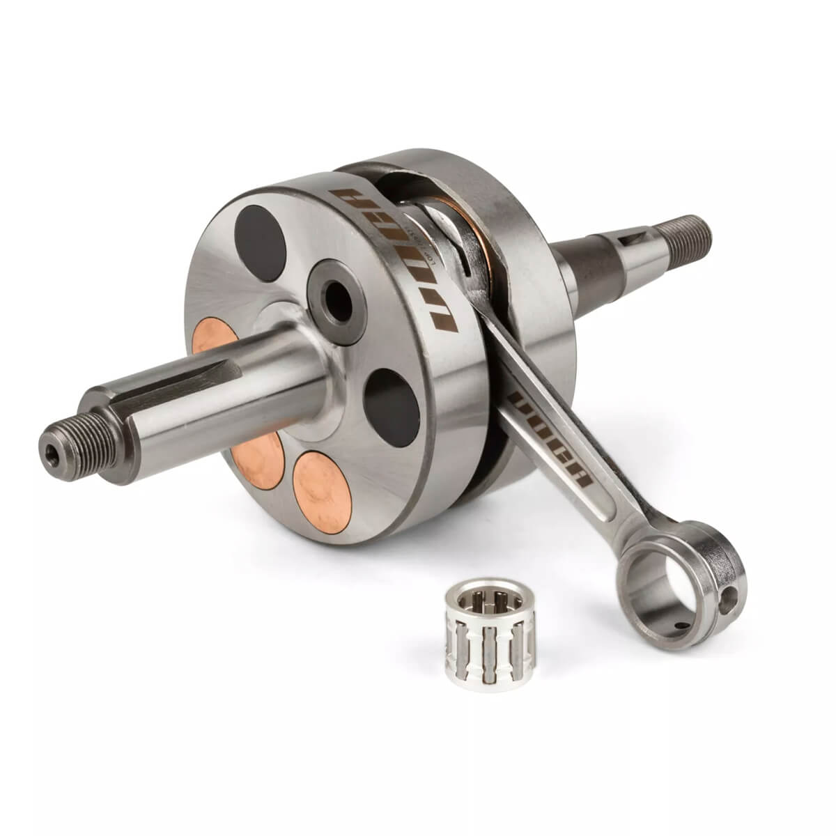 - A Biela com diâmetro superior otimizado para permitir a aplicação de rolamentos de agulha 12x17x16mm para uso com pistões de 12mm e 14x17x17mm para uso com pistões de 14mm.